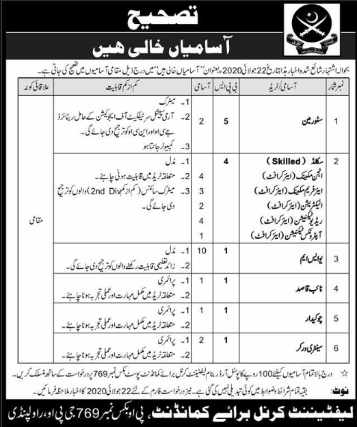 Jobs in Commandant Office Rawalpindi Situation Vacant