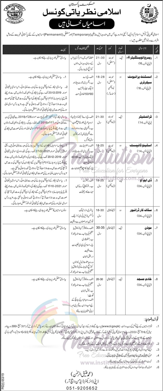 Islamic Nazariytai Council offer the following jobs opportunities