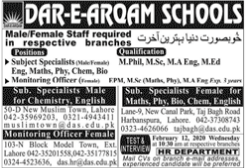 Jobs in Dar-E-Arqam School Teaching staff Required