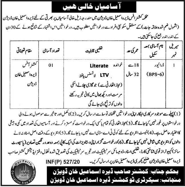 Job in Deputy Director Dera Ismail Khan Staff Vacant