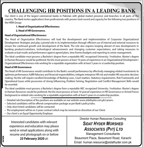 Jobs in Director Human Resources Consulting Karachi Positions Vacant