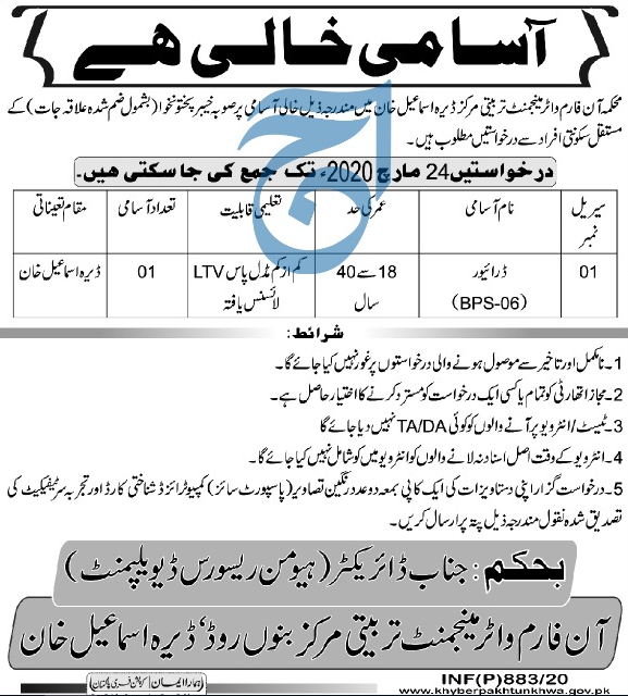 Job in Directorate of Water management Position Vacant