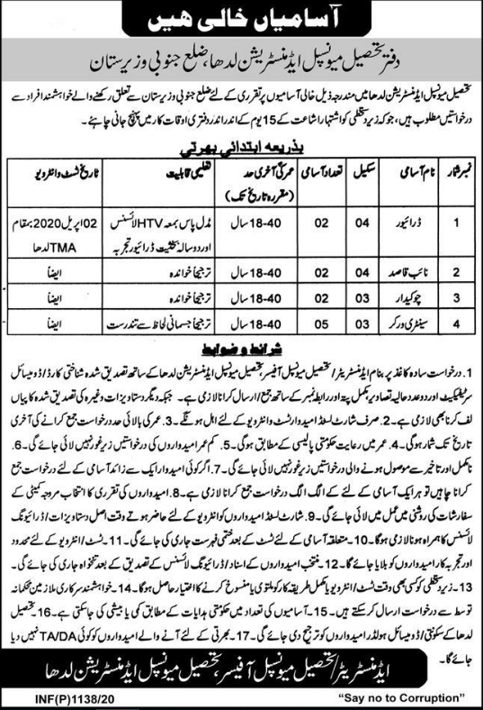 Jobs in District Administration Ladha Positions Vacant