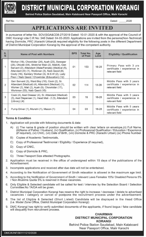 Jobs in District Municipal Corporation Korangi Positions Vacant