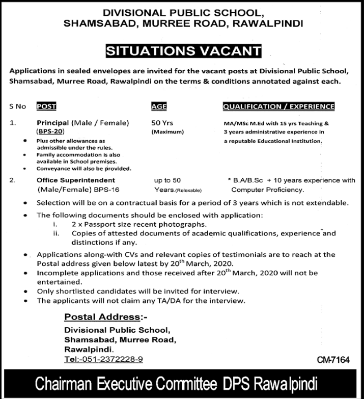 Jobs in Divisional Public School Murree Road Rawalpindi Positions Vacant