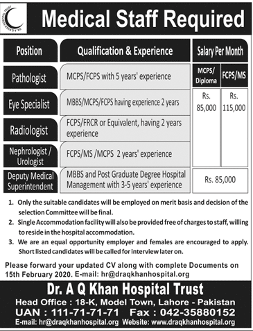 Dr. AQ khan Hospital Trust Medical Staff Required