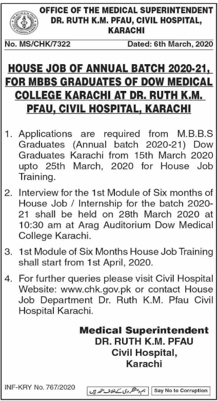 Jobs in Dr. Ruth K.M PFAU, Civil Hospital Positions Vacant