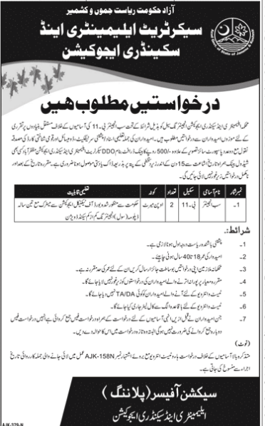 Jobs in Elementary and Secondary Education Department Positions Vacant