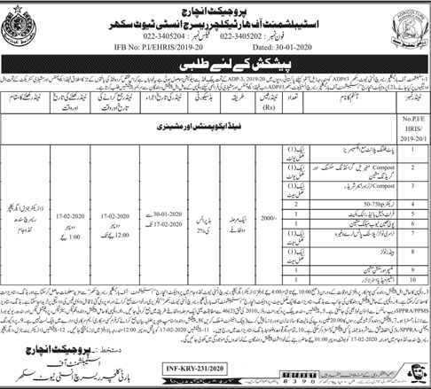 Establishment of Horticulture and Research institute Sukhar Staff Required