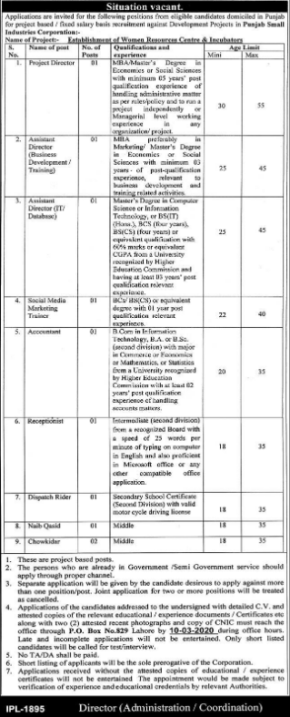 Jobs in Establishment of Woman Sources Center Positions Vacant