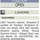 Jobs in Farooqi Grammar School Lahore Teachers Required