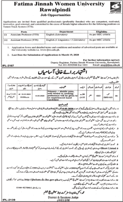 Jobs in Fatima Jinnah Women University Rawalpindi Positions Vacant