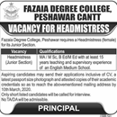 Job in Fazaia Degree College Peshawar Cantt Position Vacant