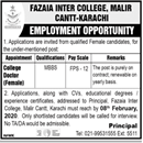 Fazaia Inter College, Malir Cantt Karachi Job Opportunity