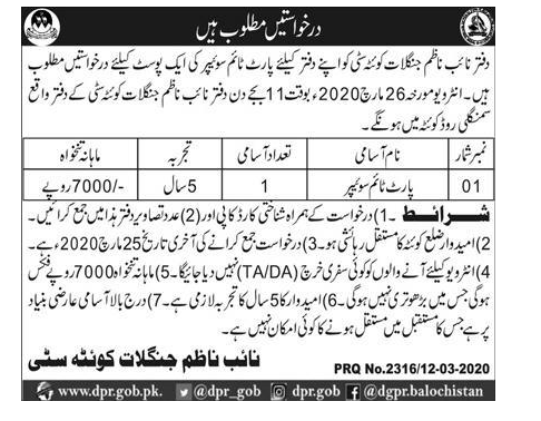Job in Forest City Quetta Sweeper Required