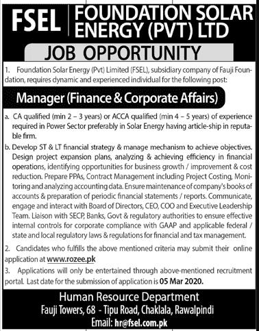 Jobs in Foundation Scalar Energy pvt Ltd Manager Required