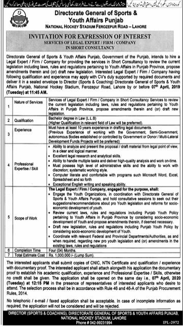 Jobs in General of Sports and Youth Affair Punjab Positions Vacant