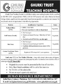 Jobs in Ghurki Trust Teaching Hospital Staff Required
