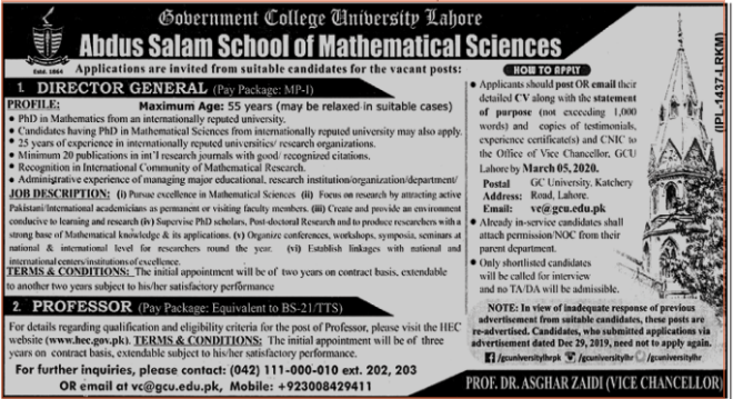 Jobs in Government College University Positions Vacant