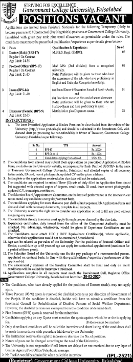 Jobs in Government College University, Faisalabad Positions Vacant