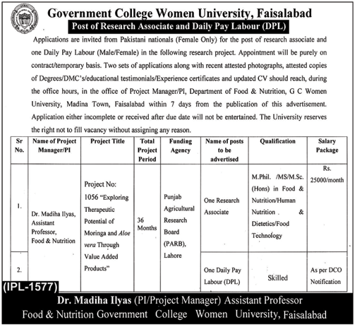 Jobs in Government College Woman University, Faisalabad Positions Vacant