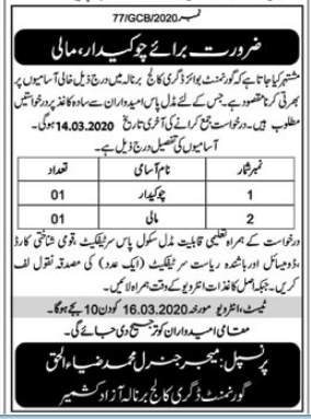 Jobs in Government Degree College, Azad Kashmir Non Educational Staff Required