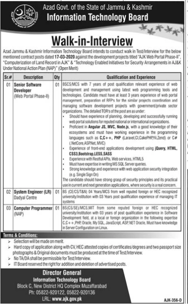 Jobs in Government of Azad Kashmir Information Technology Board Positions Vacant
