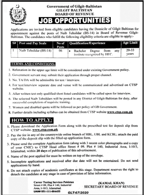 Jobs in Government of Gilgit Baltistan Board of Revenue Positions Vacant