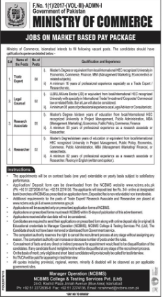 Jobs in Government of Pakistan Ministry of Commerce Positions Vacant