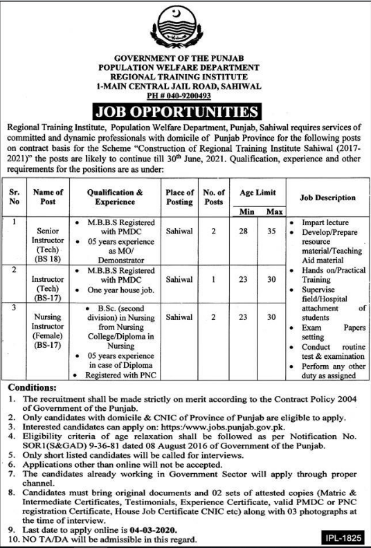 Jobs in Government of Punjab Population Welfare Department Career Opportunities