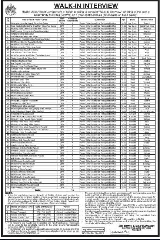 Jobs in Government of Sindh Health Department Walk in Interview