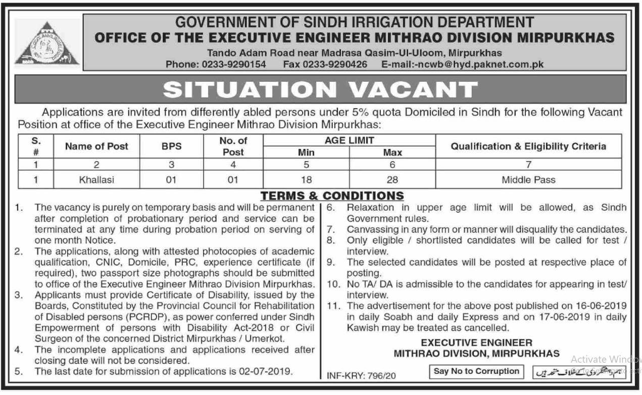 Jobs in Government of Sindh Irrigation Department Mirpurkhas Positions Vacant