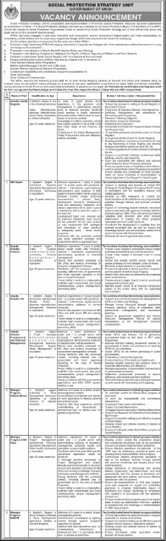 Jobs in Government of Sindh Social Protection Strategy Unit Positions Vacant