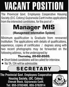 Job in Govt. Employees Cooperative Housing Society Position Vacant