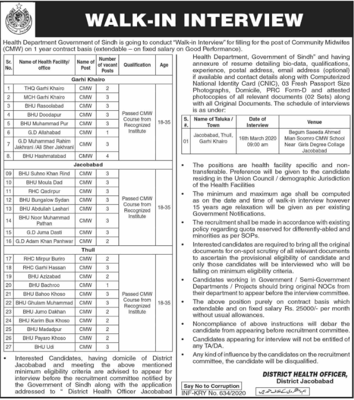 Jobs in Health Department Government of Sindh Positions Vacant