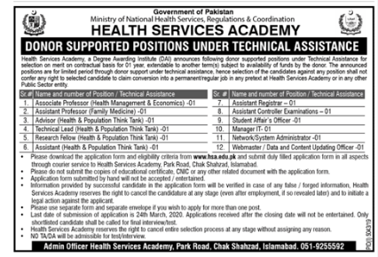 Jobs in Health Services Academy Islamabad Positions Vacant