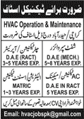 Jobs in HVAC Operation and Maintenance Technical Staff Required
