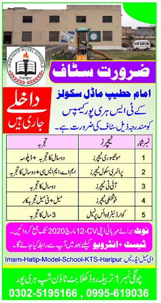 Jobs in Imam Hateeb Model School Haripur Staff Required