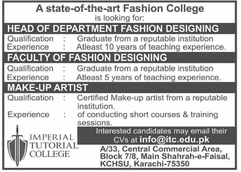 Jobs in Imperial Tutorial College Karachi Faculty Required