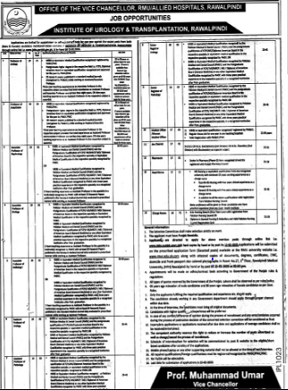 Institute of Urology and Transplantation Rawalpindi Job Opportunity