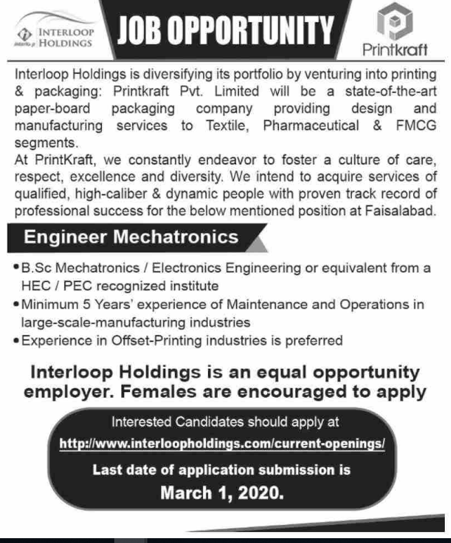 Jobs in Interloop Holding Company Positions Vacant