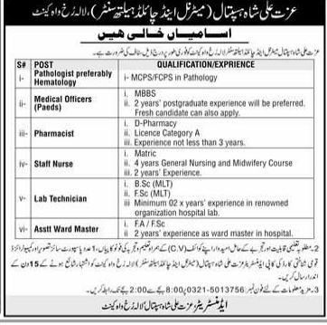 Izzat Ali Shah Hospital Job Vacant