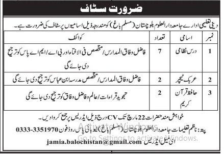 Jobs in Jamia Dar-ul-Aloom Baluchistan Staff Required
