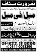 Jobs in Jan Khatak Travel Agency Male and Female Staff Required