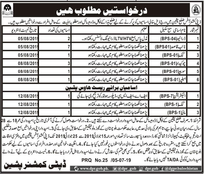 Jobs in Deputy Commissioner Office Pashteen