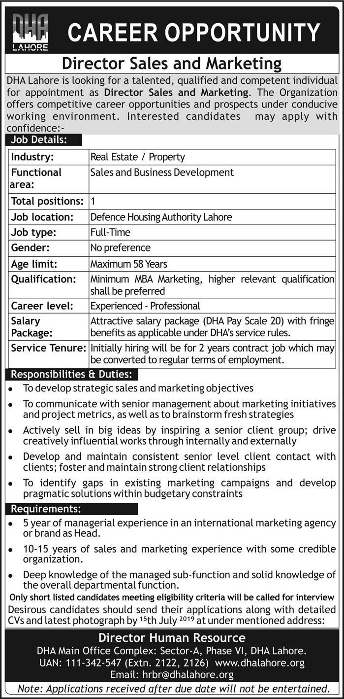 Jobs in Defenec Housing Authority Lahore 30 June 2019