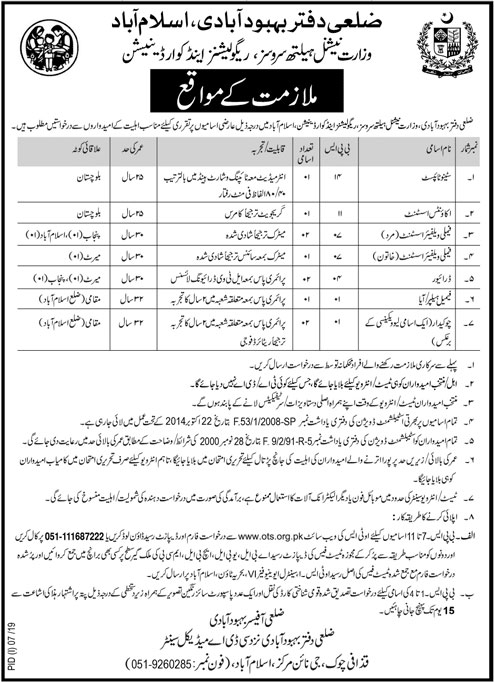 Jobs in District Population Welfare Office Islamabad
