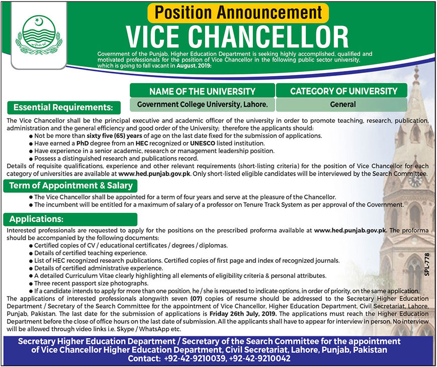 Jobs in GC University Lahore