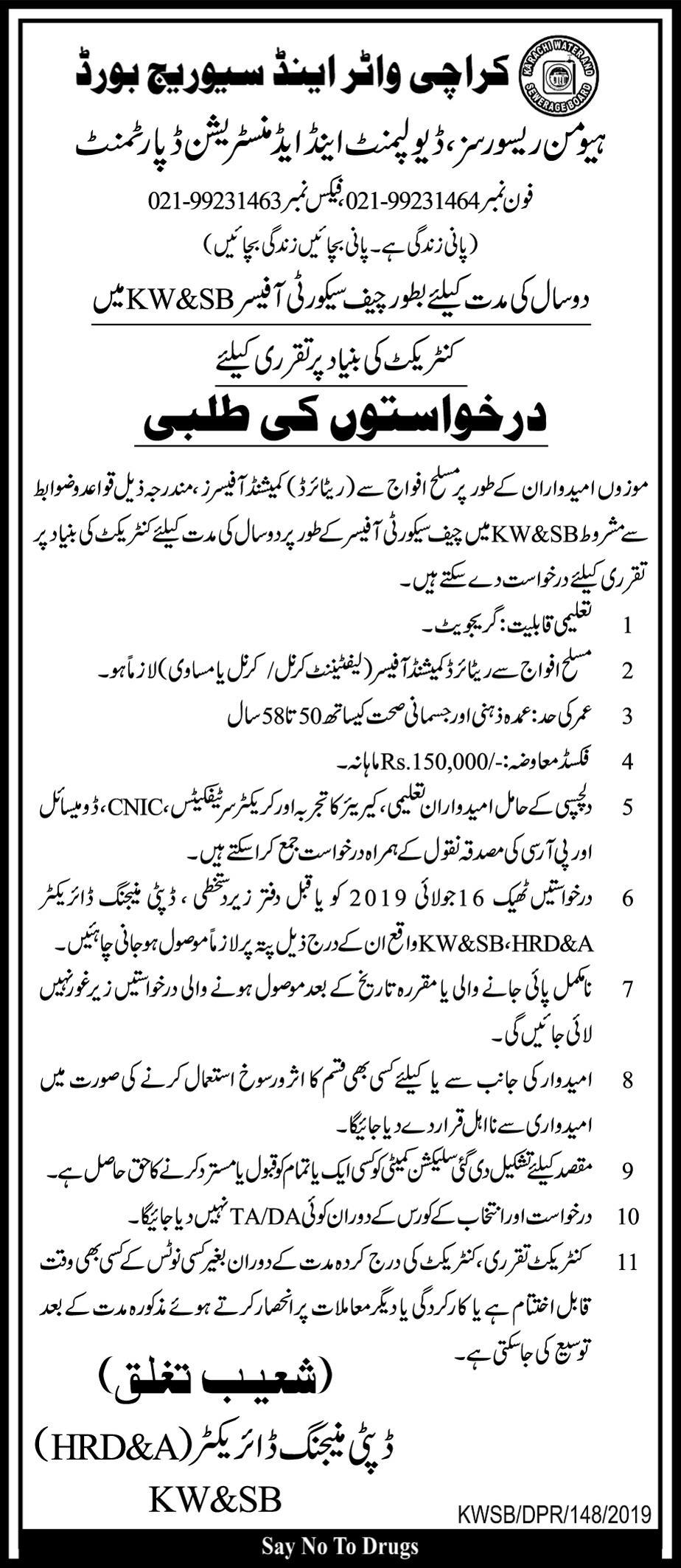 Jobs in Karachi Water & Sewerage Board 28 June 2019