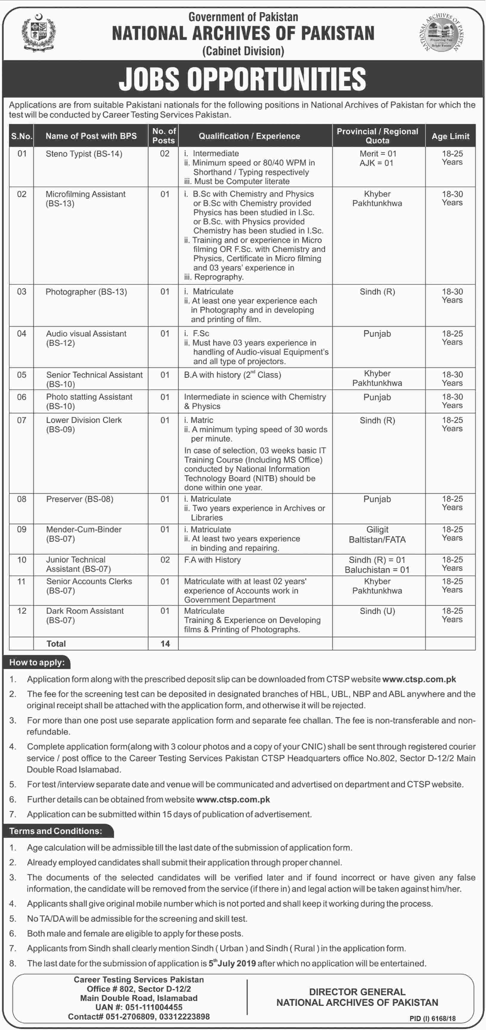 Jobs in National Archives of Pakistan 23 June 2019
